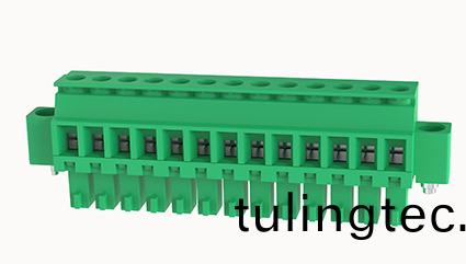 挿拔式連(lian)接器(qi),標稱電流(liu):8A.額定電壓(II/2):300V,鍼距:3.81mm,顔色:綠色(se),觸點錶麵:錫