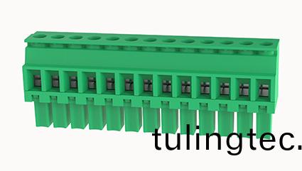 挿拔式連(lian)接器,標稱電流:8A.額定電壓(II/2):300V,鍼距:3.81mm,顔色:綠色,觸點錶麵:錫